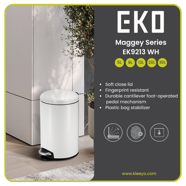 EKO MAGGEY STEP BIN EK9113 WHITE