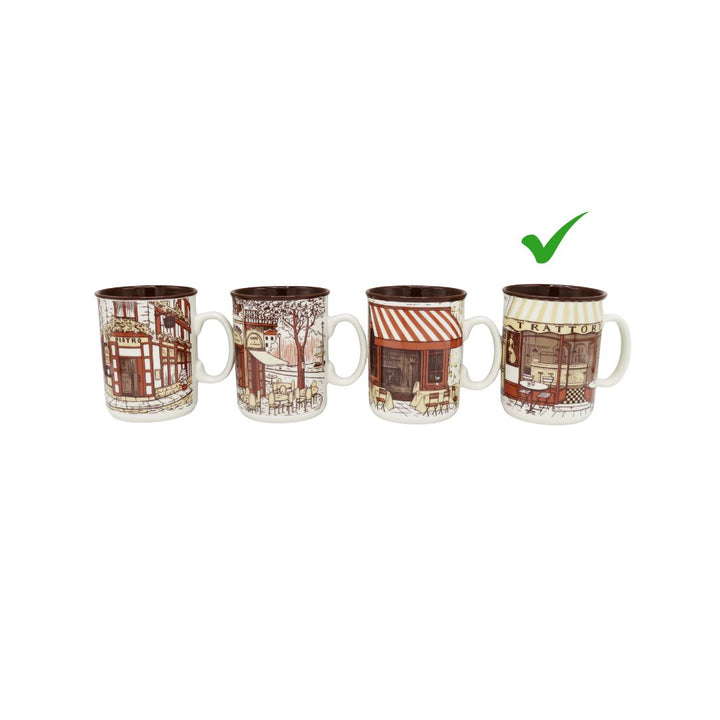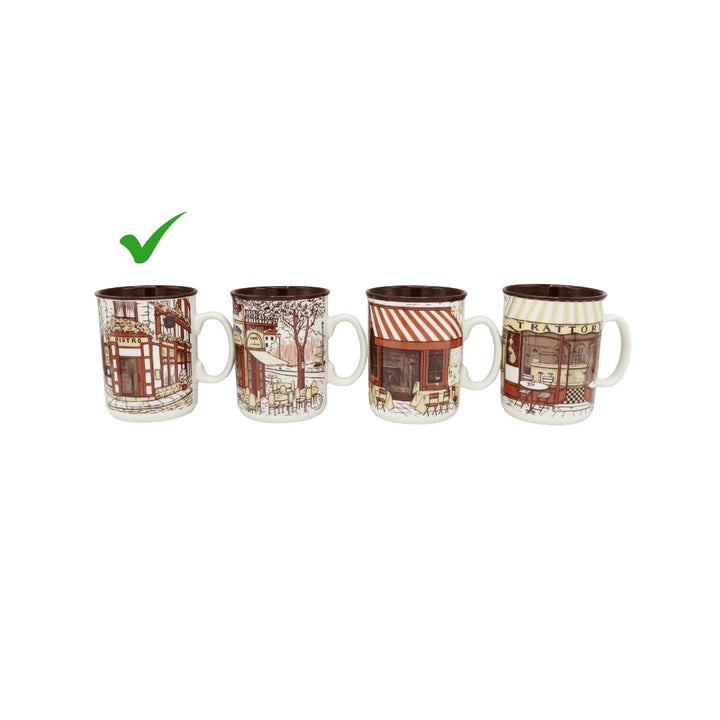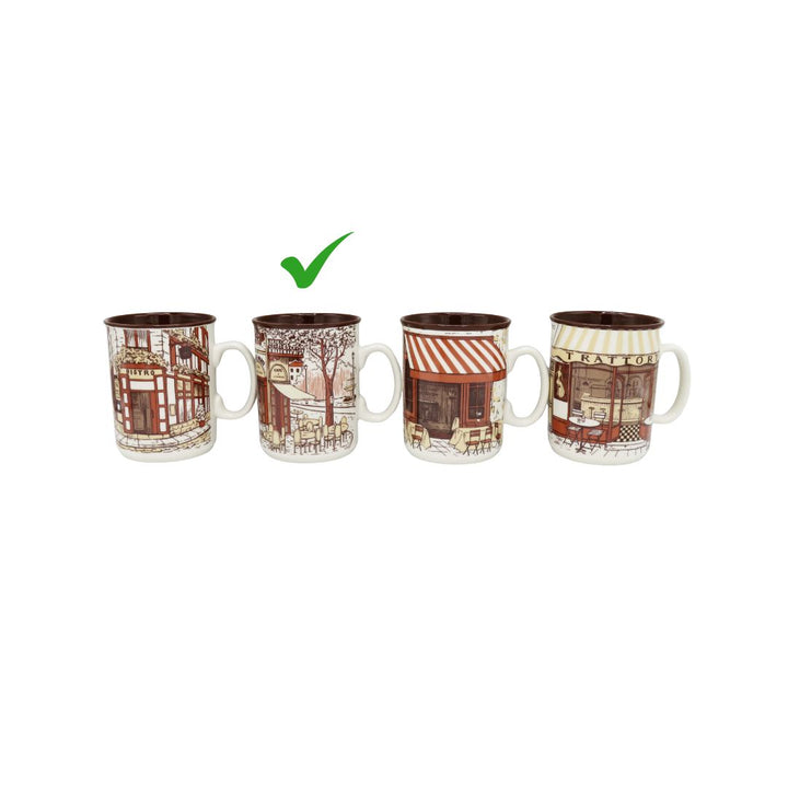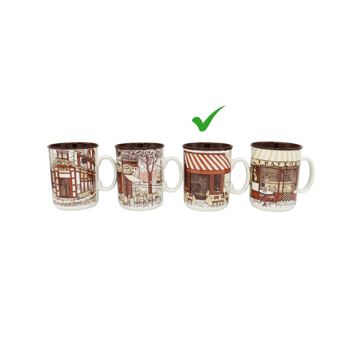 Bring the charm of a cozy European coffee street into your home with the HERITAGE Coffee Shop 6-Piece Mug Set. Each mug features beautifully illustrated café scenes—vintage storefronts, outdoor seating, warm brick textures, and inviting awnings—that create a nostalgic coffeehouse atmosphere.
