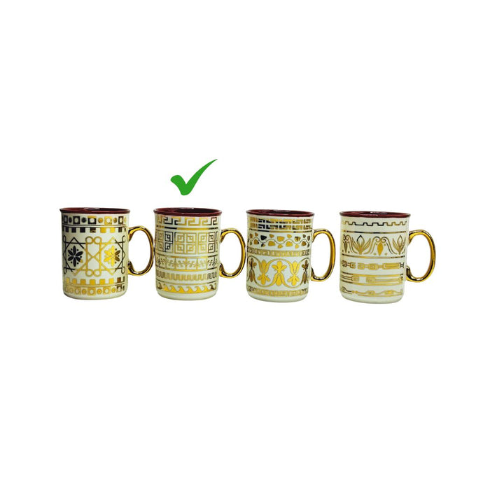 HERITAGE Mug Mate Gold Mug Crafted with intricate golden detailing and a rich maroon interior, these mugs combine luxury aesthetics with everyday functionality. Each mug features a unique heritage-inspired pattern, making this set a beautiful addition to your kitchen, dining table, or gifting collection.