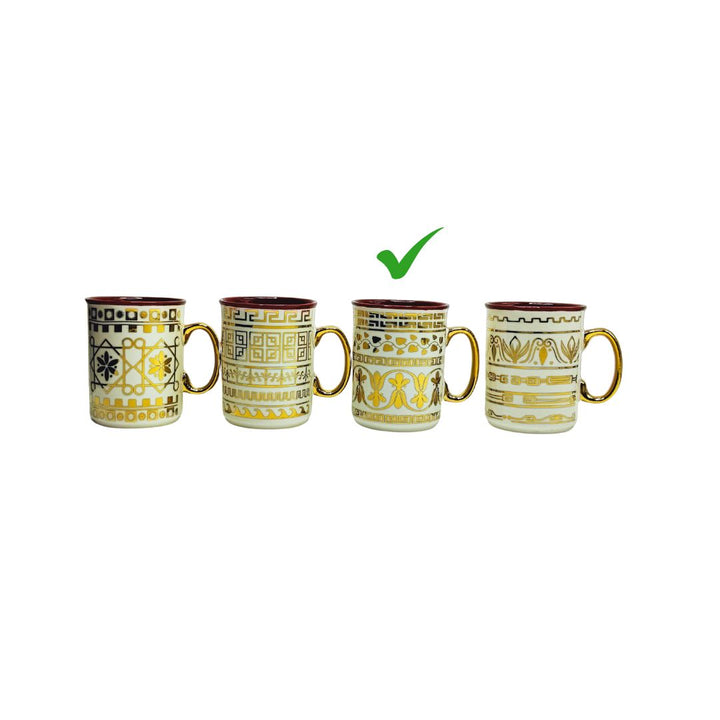 Heritage Mate Gold Mugs - 6 PCS elegant golden pattern)