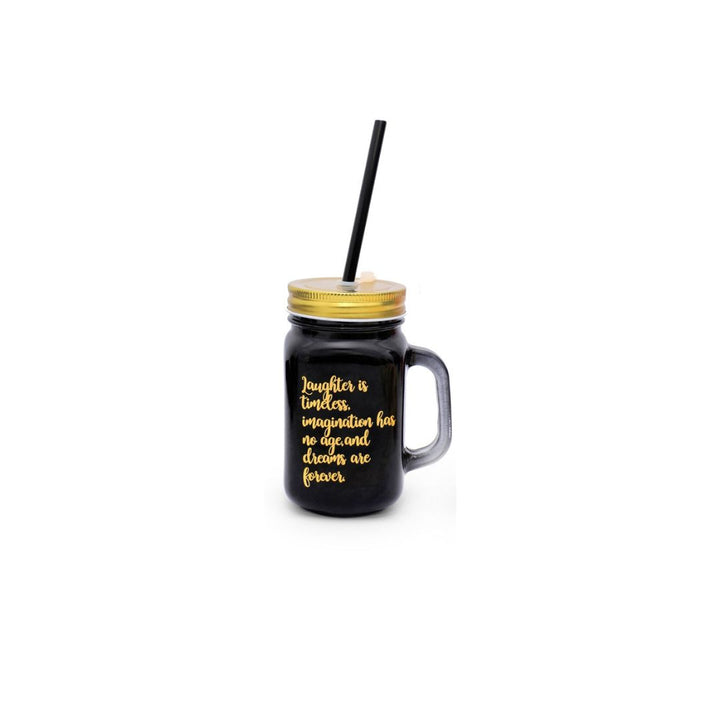 Experience style, durability, and inspiration in one design with the KLEEYO Mason Jar Bold 450ml. Crafted from premium frosted glass, this jar features a sleek black finish paired with a sturdy gold steel lid and a reusable straw.
