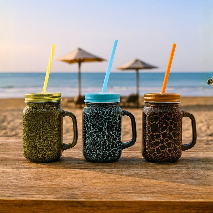 Bring a touch of style and uniqueness to your drinks with the KLEEYO Mason Jar Carving 450ml. Designed with an eye-catching crackle carving pattern, this mason jar is perfect for juices, shakes, iced coffee, mocktails, smoothies, or café-style beverages at home.
