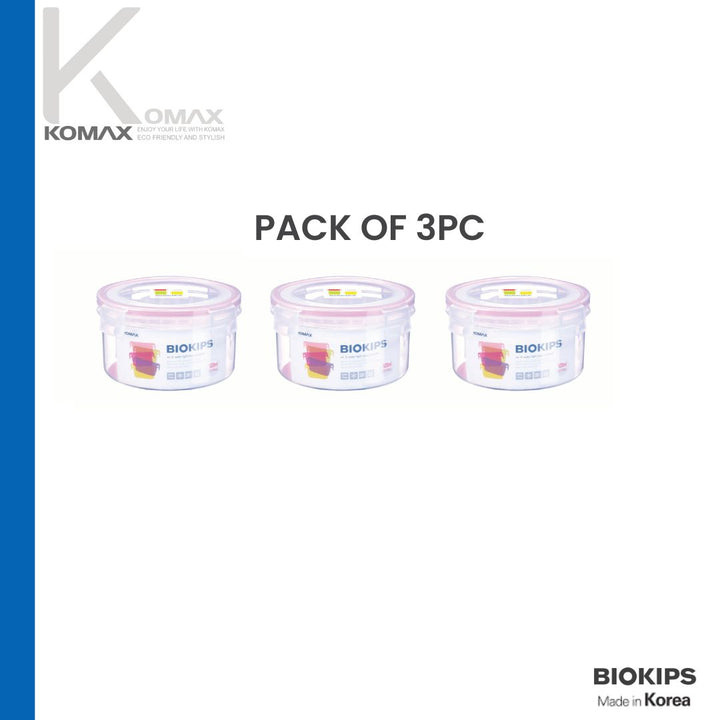 The KOMAX BIOKIPS Round Airtight Food Container (C21) is designed to keep your food fresh, protected, and flavorful. With a generous 920ml capacity, it is ideal for storing fruits, salads, leftovers, snacks, lunch portions, and more. Its premium 4-side locking system combined with a durable silicone gasket delivers a 100% airtight and leak-proof seal, making it perfect for both home and on-the-go use.