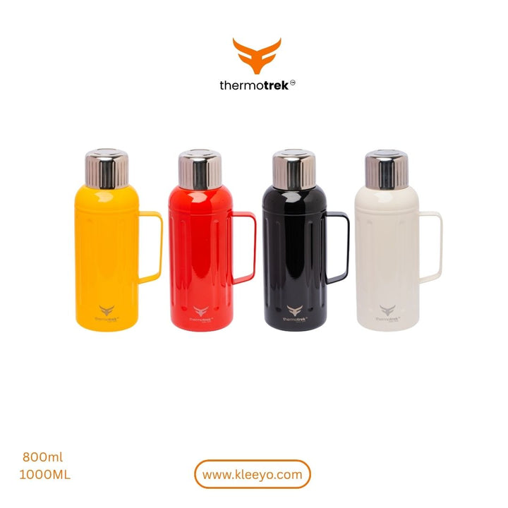 ThermoTrek Stainless Steel Insulated Thermos with Handle, designed for daily use, travel, and outdoor adventures.this thermos ensures your drinks stay hot for up to 12 hours and cold for up to 24 hours.